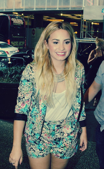 Agora gente, olhem que look mais LINDO! A Demi usou um conjuntinho florido com uma regata branca e arrasou!