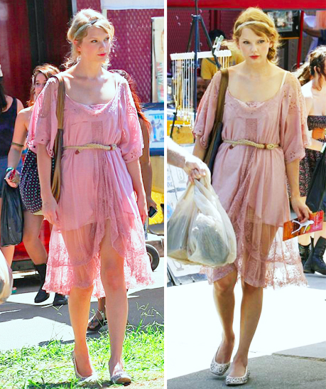 Ameeeeei o look! Tô sem palavras de tão lindo que eu achei, hehe! A Taylor é muito princesa né? Ameeei esse vestidinho vintage com detalhes em renda, que é a cara dela. O look ficou super fofo com o detalhe do cintinho na cintura e da headband maravilhosa no cabelo.