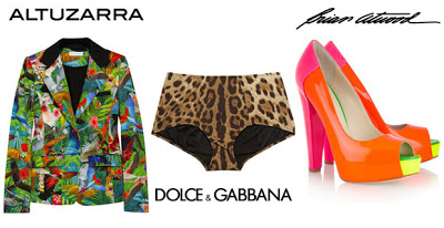 E por falar no clip, já saíram algumas fotos da gravação. Os looks estão bem coloridos e com mix de estampas. Ela usou um blazer Altuzarra com top de estampa floral e uma hot pant  Dolce & Gabbana com estampa de oncinha. Para finalizar, um peep toe tricolor do Brian Atwood com cores em neon.