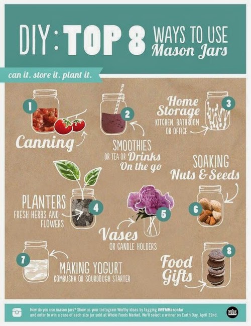 Se tem uma coisa que está bombando lá na gringa, são as mason jars! As mason jars são nada mais nada menos que potinhos (tipo esses de maionese e azeitona, hehe)! Lá você encontra em todos os lugares e eles são usados como copos e objetos de decoração.