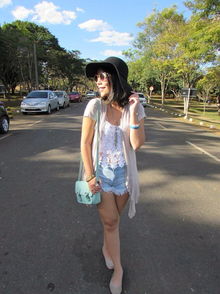 Como vocês já perceberam eu amo o estilo boho e de vez em quando estou montando looks com essa pegada! O look de hoje é para aqueles dias de sol quente, que nem está acontecendo exatamente agora! A primavera começou e com ela vem aquele calor agradável, só que não, haha! E eu acho que o estilo boho tem tudo a ver com estações mais quentes! Pra trazer esse ar ao meu look, eu usei essa blusinha rendada, o chapéu e os óculos redondo!
