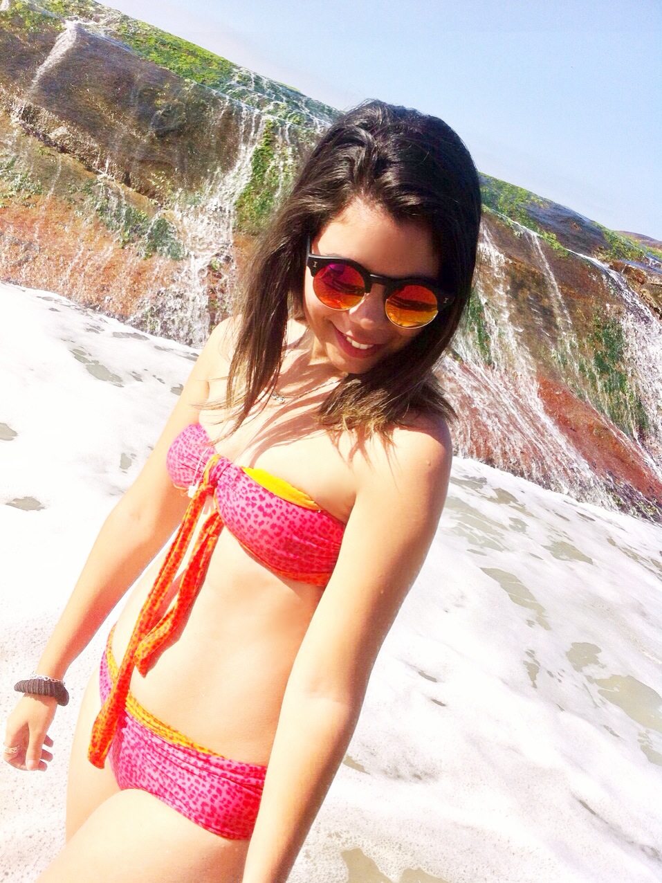 E é aí que vocês me perguntam… de onde você tirou a ideia que ia descer essa pedra, Naty?! Pois é, não sei! Haha! Eu achei fotos dessa praia e cismei que tinha que ir lá! Eu não tinha pensado em como, haha, só queria ir! Quando descobri que a única maneira de chegar lá seria descendo a pedra, decidi que iria mesmo assim (mesmo MORRENDO de medo de altura, #aloka). Só quando comecei a descer, é que percebi a loucura que estava fazendo, e digo que realmente foi a maior loucura da minha vida! Sério, olhando agora pra tudo que eu desci e tive que subir, digo que não faria de novo, haha, mas é claro que valeu a pena!