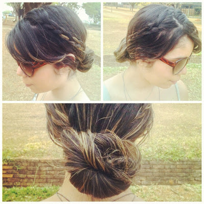 E quando eu disse que o calor tá de lascar, eu não estava exagerando! Tem dias que e impossível usar o cabelo solto, então a gente tem que inventar! Fiz esse coque, mas incrementei com tranças nas laterais! Fiz tudo sozinha! Fiquei tão orgulhosa de mim, haha!