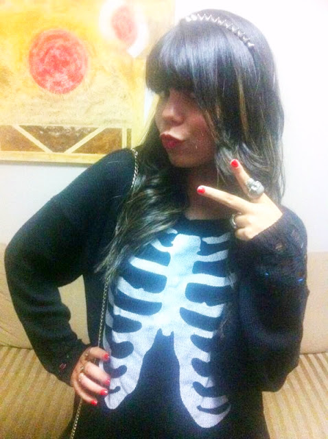 Lembram daquele sweater detonadinho de caveira que eu comprei na Renner?! Pois é, finalmente usei, hehe! Mas já peço desculpas pelas fotos! Infelizmente sempre saio de casa atrasada e quando dá tempo de fazer as fotos, é correndo, hehe! A qualidade não tá das melhores, mas dá pra ter uma noção do look! Prometo que depois faço mais um look com eles com fotos mara, porque ele merece, hehe!