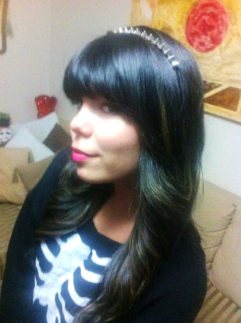 Eu usei esse look para ir nuns showzinhos de rock e por isso aproveitei pra colocar meu lado rockeira pra fora, hehe! Usei o sweater com um shortinho jeans e as botas biker, que também são da Renner! A bolsa é da Fulô e a tiara de spikes (parecida com a que a Sienna Miller usou no baile do MET) é da minha marca, WOW!