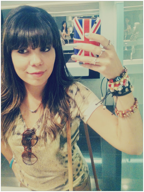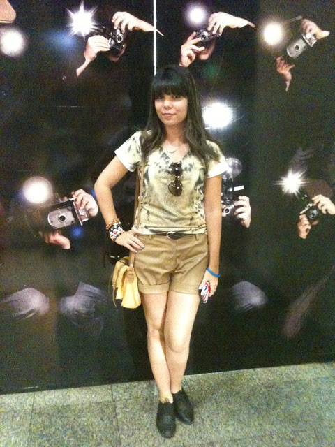 O look do dia de hoje é bem básico, combo de shortinho com t-shirt. Eu usei esse look no sábado e fiz várias coisas, fui no shopping comprar meu ingresso pro show do Simple Plan e acabei ficando mais um pouquinho para ver o evento de Anime que tava rolando na FNAC do Park Shopping. Depois célula e Festival Internacional de Cinema, que tava rolando aqui em Brasília. Eu fui especialmente para assistir “Bel Ami” com o Robert Pattinson, mas infelizmente a blogueira aqui trocou as bolas e foi no dia errado. Resumo, não assisti o filme! Maaas, no fim da noite lembrei de tirar as fotos do look para colocar aqui no blog, hehe!Para montar o look eu escolhi cores mais terrosas e fui com uma t-shirt de oncinha que eu comprei no Saara quando fui ao Rio de Janeiro. Para completar, shortinho caramelo de couro da Marisa, bolsa amarela estilo Alexa da Renner e oxford preto também da Renner.