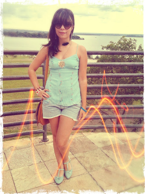 O look do dia de hoje tem uma cor predominante e que eu adorooooo, o verde água! Usei esse look que é bem levinho e básico para passar uma tarde de domingo agradável em família. O look tem uma pegada boho por causa do brinco de penas e da blusa, mas ao mesmo tempo é meio romantiquinho!