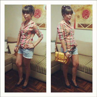 O look de hoje é um básico para ir comemorar o aniversário das amigas num barzinho. E com o calor que tá fazendo aqui em Brasília até de noite, resolvi ir com um look mais fresquinho. A camisa xadrez é bem levinha e ao mesmo tempo é uma garantia pra caso começasse a ventar, hehe, sou friorenta, mas acabou que fez calor mesmo!