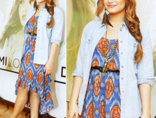 E que look mais fofo esse né?! Fiquei babando na tv! Tudo lindo, a camisa jeans com pedrinhas bordadas, a saia e o sapato maravilhosooooo! Outra coisa que adorei, foi o cabelo! O coque estava lindo e o acessório deu o toque final!