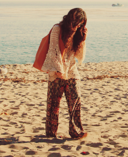 E para dar um passeio na praia de Malibu com os amigos, Selena optou por um look mais boho, hippie chic. Ela usou um vestido Unif Ashbury e uma calça estampada! Tudo bem 70’s!