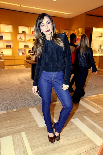 E para encerrar, temos Sabrina Sato, que usou este look em um almoço do evento. Jaqueta preta com muitas franjas e sapato de animal print! AMEI!