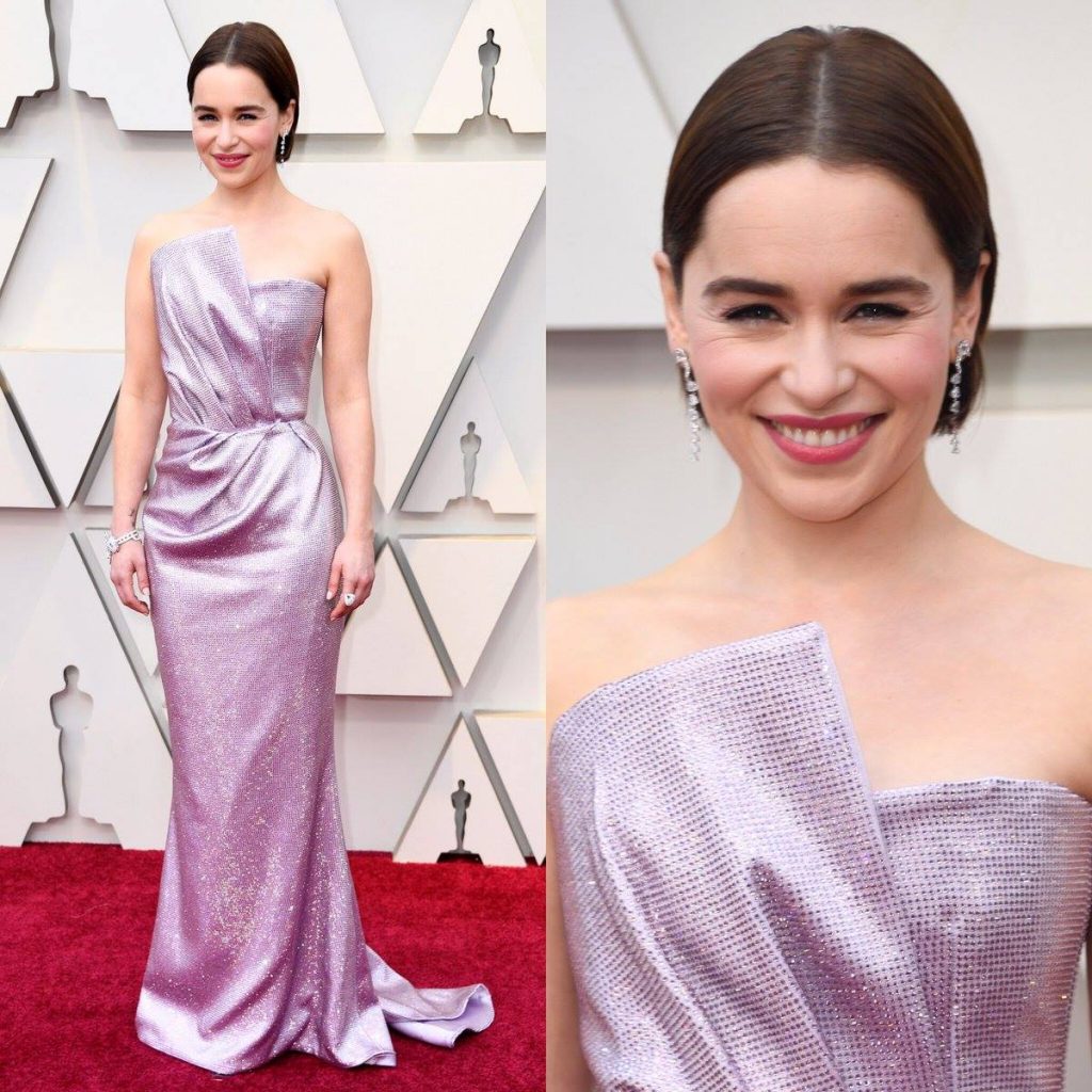 Emilia Clarke estava super linda e fofa nesse Balmain rosa/lavanda! Achei o vestido bonito!