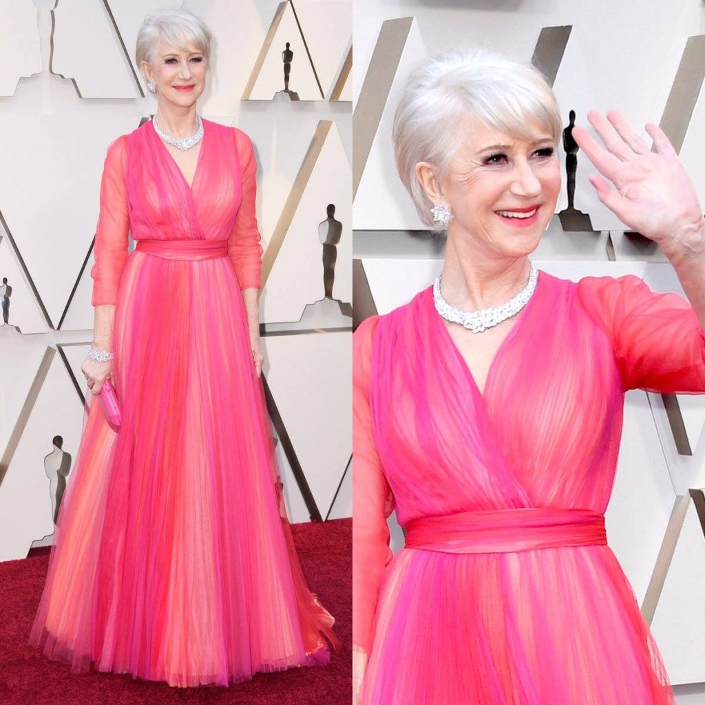 Helen Mirren estava divíssima nesse vestido rosa Schiaparelli!