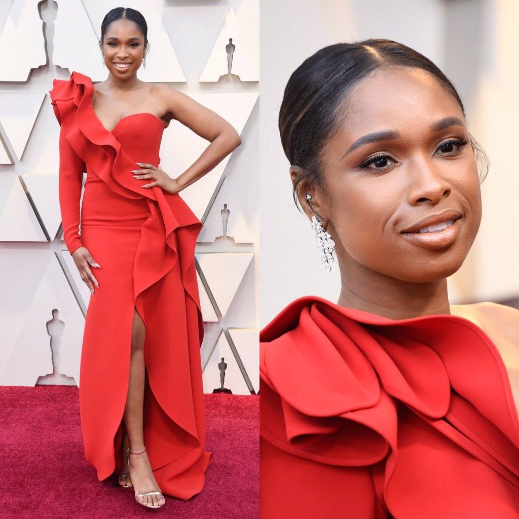 Jennifer Hudson apostou no vermelho e foi linda nesse Elie Saab! Apaixonada!