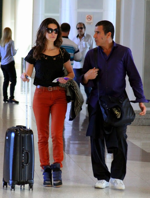 Linda, né?! Ela usou a calça vermelha com uma blusa branca, cintinho e um sapato baphônico! A calça vermelha cai muito bem com blusas brancas, aliás, já foi postado aqui no blog outro look de aeroporto com esse combo. Lembram desse look da Mariana Ximenes (clique aqui)?