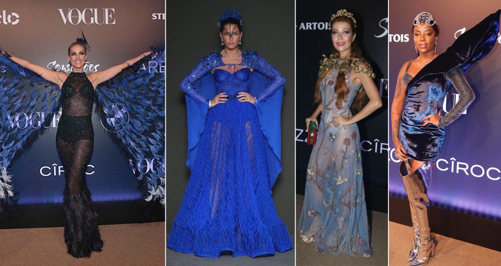 Já nos looks mais puxados para o azul, tivemos a Ana Hickmann, que foi de borboleta. Também tivemos Helena Bordon, Luiza Possi e Ludmilla.