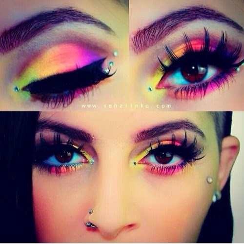 Separei algumas makes, umas mais simples e outras mais elaboradas! Tudo com muita cor e muitas delas tem glitter (que eu ADORO) que são uma ótima pedida para esse tipo de evento. É um bom motivo pra gente sair brilhando à la Edward Cullen sem medo de ser feliz, hehe!