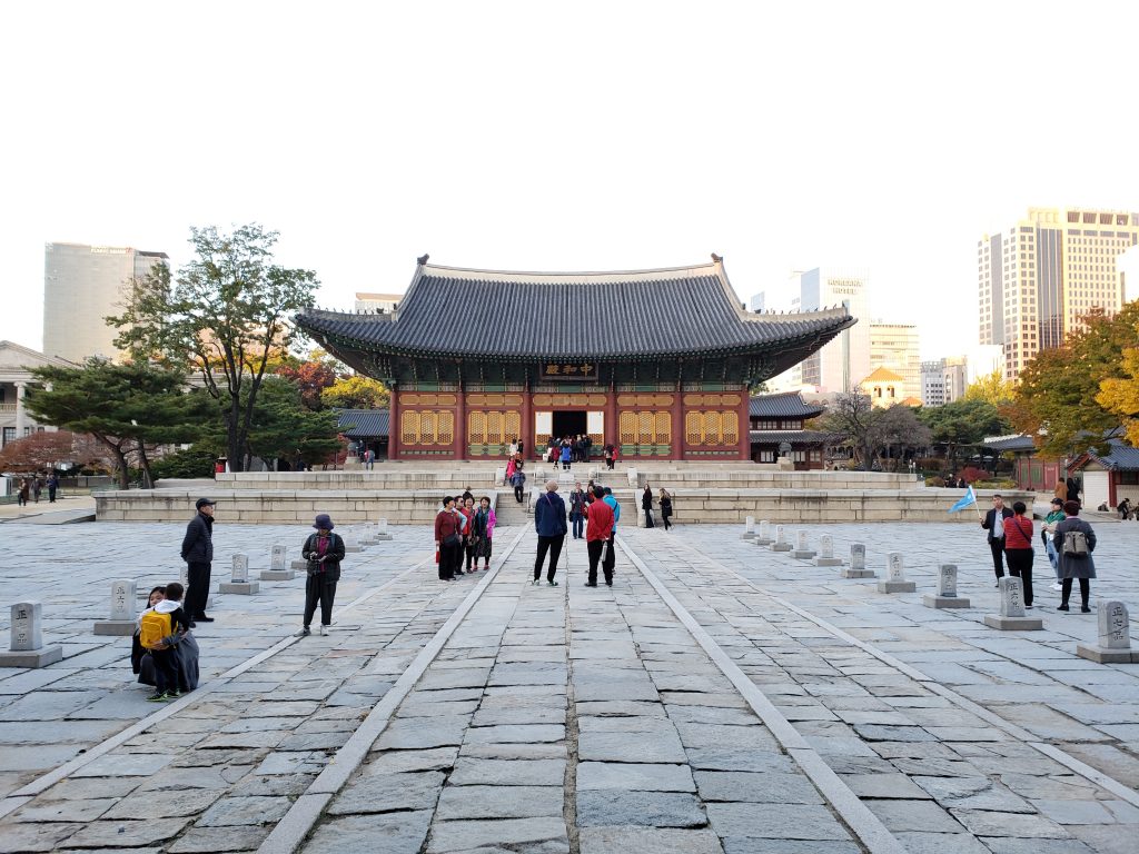 O primeiro palácio da viagem foi o Deoksugung, que é um palácio menor, porém super charmoso! Fiquei super encantada com esse passeio, já que visitar os palácios era uma das coisas que eu mais estava ansiosa para fazer. Eu amo assistir k-dramas e os históricos são os meus favoritos, então nem preciso dizer que me senti num drama estando lá, né?