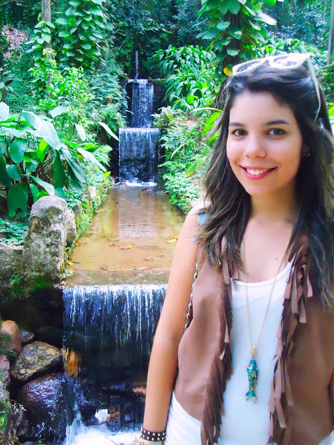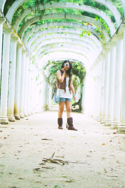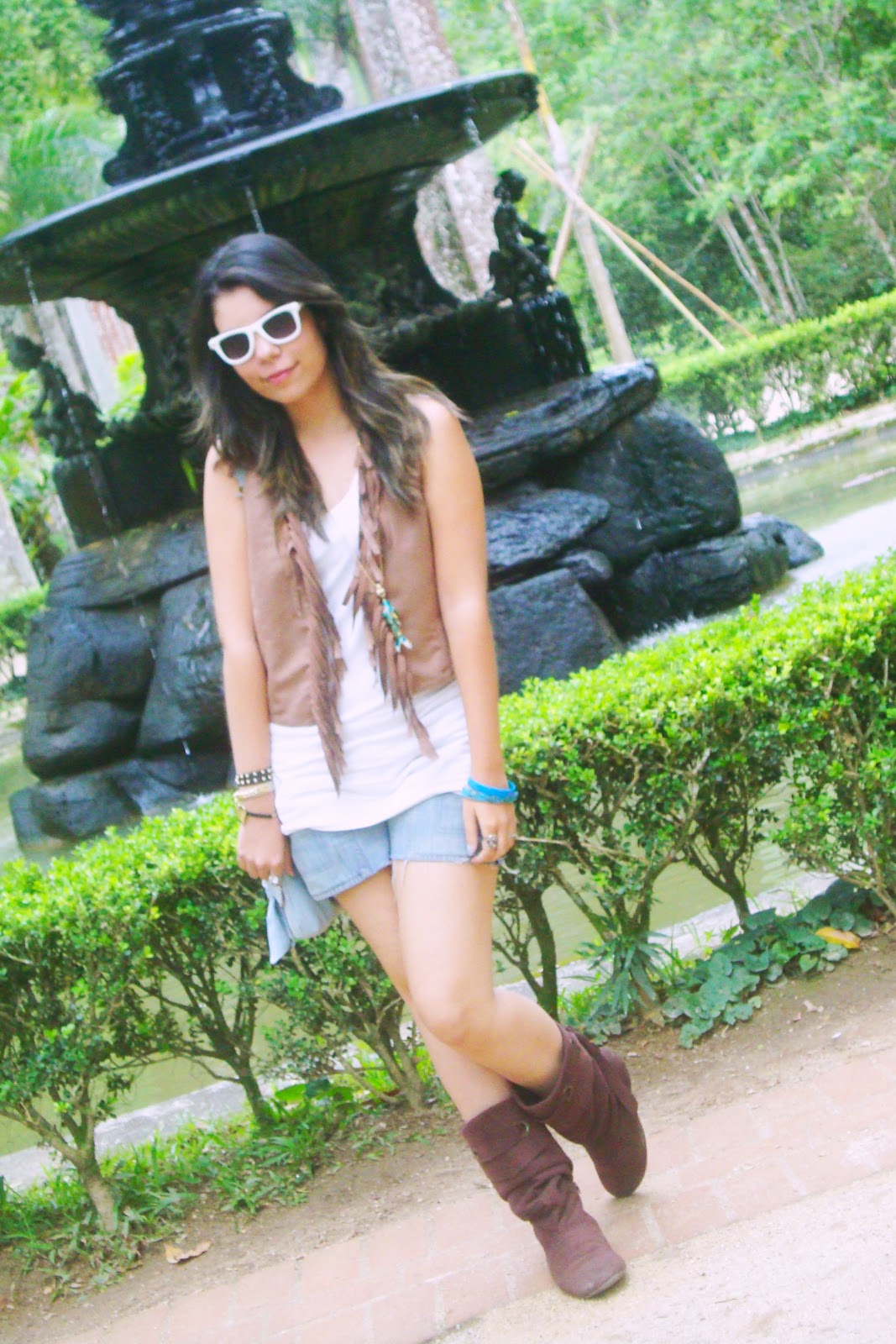 Quanto ao look, eu usei uma roupa bem fresquinha, mas resolvi ir de bota pra caso chovesse não pegar umas poças por aí, hehe! A regatinha é da Renner, o shortinho é uma calça antiga q foi cortada, o colete de franjinhas é da Marisa, a bolsa é da Zara e os óculos são Bleu Dame. A bota é sem marca, porque ganhei da minha tia que comprou de uma moça que vendia em casa, hehe!
