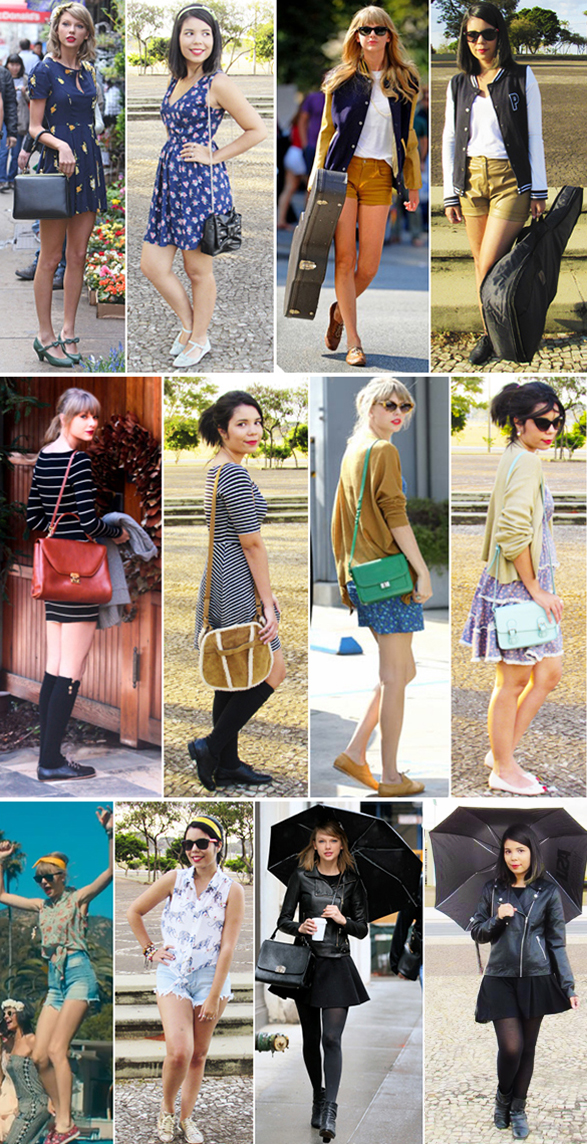 Então, pra mostrar que é possível se vestir como a cantora sem necessariamente ter a mesma conta bancária que ela, eu recriei seis looks da Taylor com peças do meu armário.