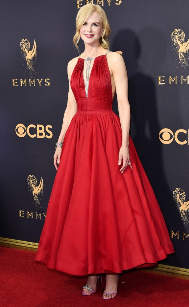 Assim como Millie Bobby Brown, Nicole Kidman apostou em um vestido bem rodado. Ela também usou um Calvin Klein, só que vermelho. Achei muito diva de Hollywood!
