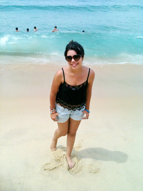 Para montar o look para essa trilha, eu escolhi peças bem coloridas porque queria que se destacasse na paisagem (aquela que pensa em tudo, hahaha)! Por isso escolhi essa blusa vermelha da coca-cola. Para completar usei um shortinho jeans, uma camisa xadrez amarrada na cintura e tênis!