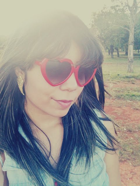 Se tem um acessório que eu adoro e acho super fofo, são os óculos de coração! Sempre fui doida para ter e recentemente achei um na Marisa e nem acreditei, hehe! Eu lembro que toda vez que eu falava que queria um desses, as pessoas me perguntavam “Mas você vai ter coragem de usar?”, a minha resposta sempre foi “Clarooo!”, hehe! Muita gente acha que eles não são usáveis no dia a dia, mas se enganam! Eles podem sim ser usados sem ser com fantasia, haha! Eles deixam os looks muito mais fofos e divertidos!