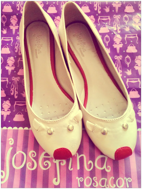 Olhem só o que eu achei… sapatilha de bichinho! Nem acreditei quando eu vi, hehe! Essa sapatilha de ratinho era a última da loja e era exatamente do meu tamanho, hehe! Foi muita sorte! Agora o melhor foi o preço, estava na promoção por apenas R$58,00 na Josefina Rosacor do Terraço Shopping!