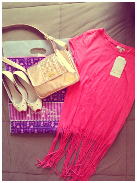 E na mesma loja eu comprei essa bolsa rosa metálica com detalhes em tachinhas douradas! Foi amor a primeira vista, hehe! Aliás galera, essa loja super vale uma visita hein! Tem coisas super lindas e fofas e com preços ótimos! Essa bolsa custou R$ 89,00!