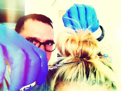 A cantora acabou de postar em sua página do twitter o seu novo visual. Primeiro ela postou uma foto onde o seu famoso coque iria ser cortado. Até aí legal, achei que era tipo uma brincadeira, mas aí ela me vem com esta foto no twitter: