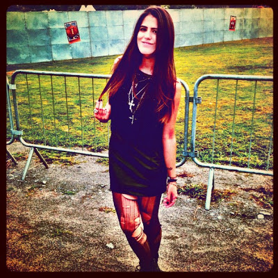 E para encerrar, Tota Morais! Pra quem vive de olho no Ego assim como eu, deve conhecer bem essa mocinha que é filha da Glória Pires! Preciso confessar que ando obcecada pelo instagram dela. Ela sempre posta fotos maravilhosas e com looks incríveis. Para assistir aos shows, Tota escolheu um look mais gótico e foi de vestido preto, muitos colares com crucifixos e uma meia suuuuper rasgada!