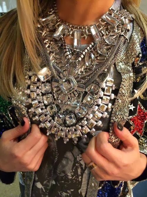 Aqui temos um look bem rock glam, com shortinho jeans, camiseta e acessórios babadeiros que deixaram o look super interessante. O casaco todo bordado tem um ar meio Balmain e uma coisa meio toureiro, hehe, amei! Pra completar, maxi colar baphônico e ankle boot!